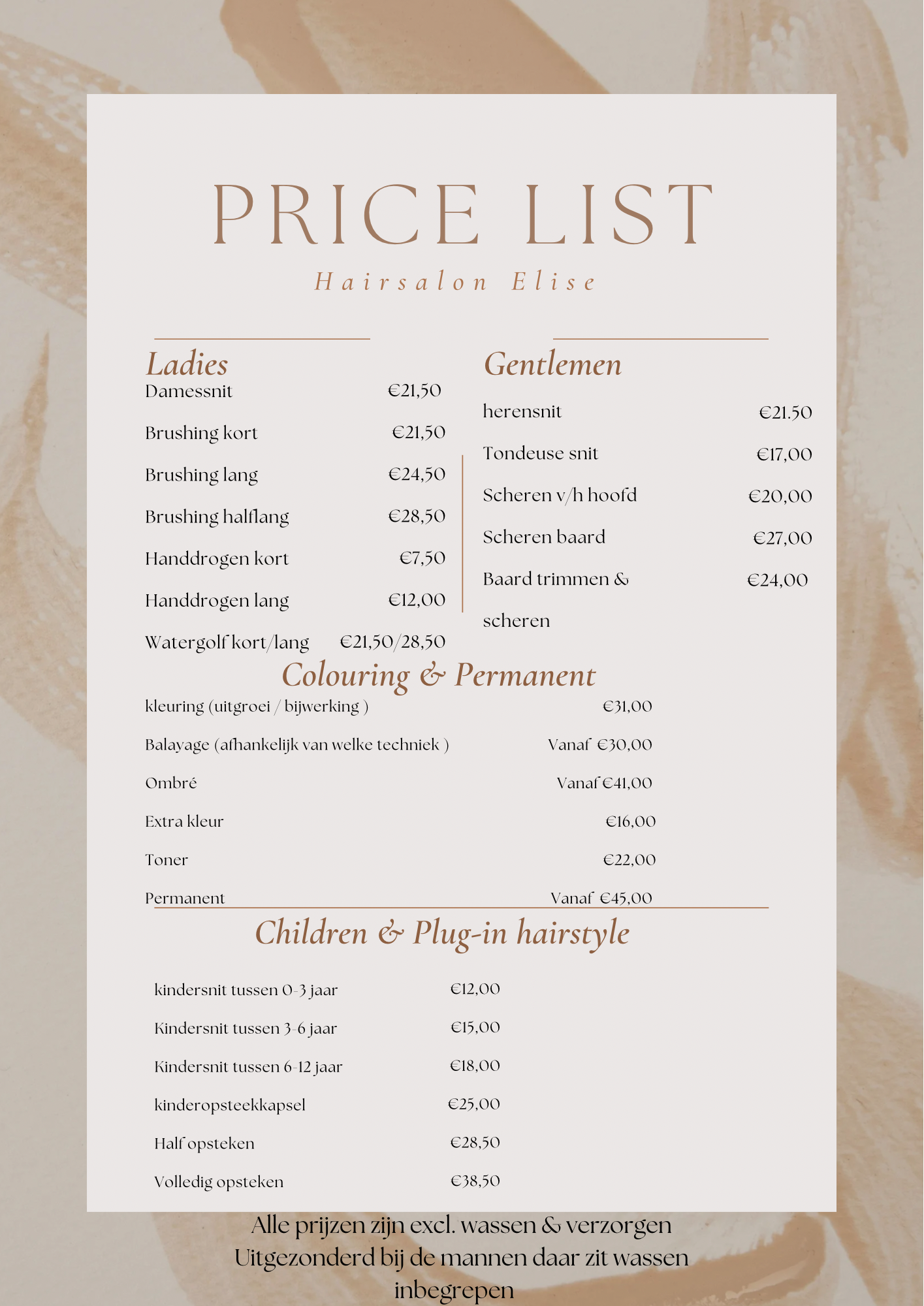 We zijn veranded van 4/02/2025 naar een nieuw boekingssysteem zie link: https://salonkee.be/salon/hairsalonelise?lang=nl